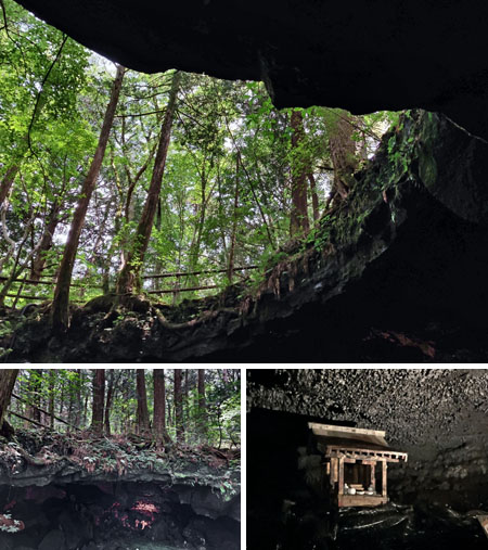 「吉田のうどん」をいただいた「ひの樹」というお店から西へ約10km。青木ヶ原樹海の中にある鳴沢氷穴までやってきました。先ほどの船津胎内樹型とは···