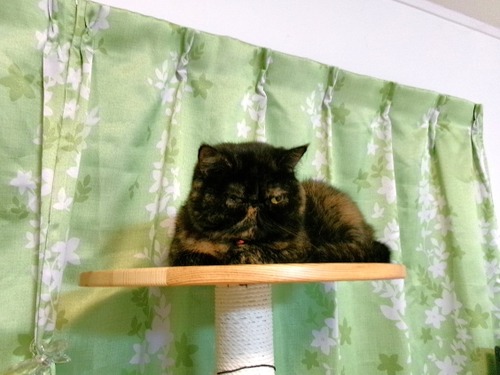 オイオイオイまだまだ余震があるのにキャットタワー展望台で休んでるこんちゃん…こっ、怖くないの…まぁ~ 今回の一連の地震でもまったく怖がって無い···