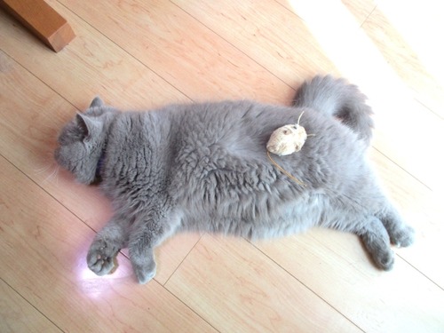 あっ足元に?なるくんが落ちてる…んっ お尻に何かを乗せてる様だけど…?あぁ~ ネズミのおもちゃだったのかこんちゃん&つっくんが遊んでて偶然乗っかっ···