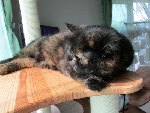キャットタワーに上がってるのはあららっ こんちゃんじゃない珍しいわねぇ~実はこの場所は午前中お日様が当たって気持ちが良いんだよねぇでも… あま···