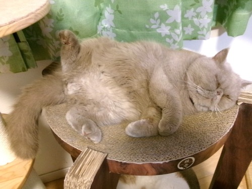 爪とぎベッドで気持ち良さげに寝ている?なるくんですが…実は… 今回も不貞寝しております未だに毎日毎日懲りずにスイーツのおねだりしております…当然···