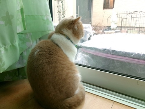 今朝は風流に…雪見を楽しんでるつっくんチラチラと降る雪をじ~っと見つめてました…いったい何だと思って見てるんでしょうかねぇ~にゃんこの真剣な眼···