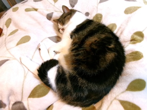 寒波に備えてリビングのソファーに厚めの毛布を設置ハイ すぐにがんちゃんがお昼寝開始寒い時はしっかり暖かくして寝る流石がんちゃんだねぇ~そして…···