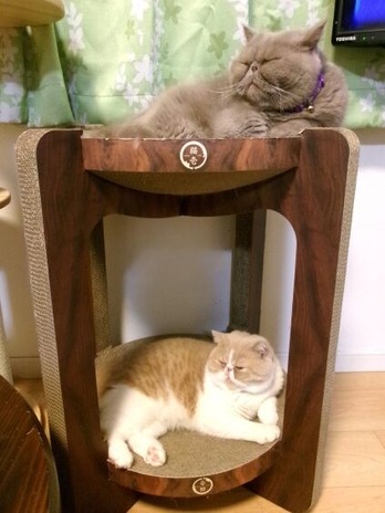 今朝はこの組み合わせか…爪とぎベッドで休んでる?なるくん&つっくん見た感じはエキゾチックマンションといったところでしょうか…?なるくんが先輩の貫···